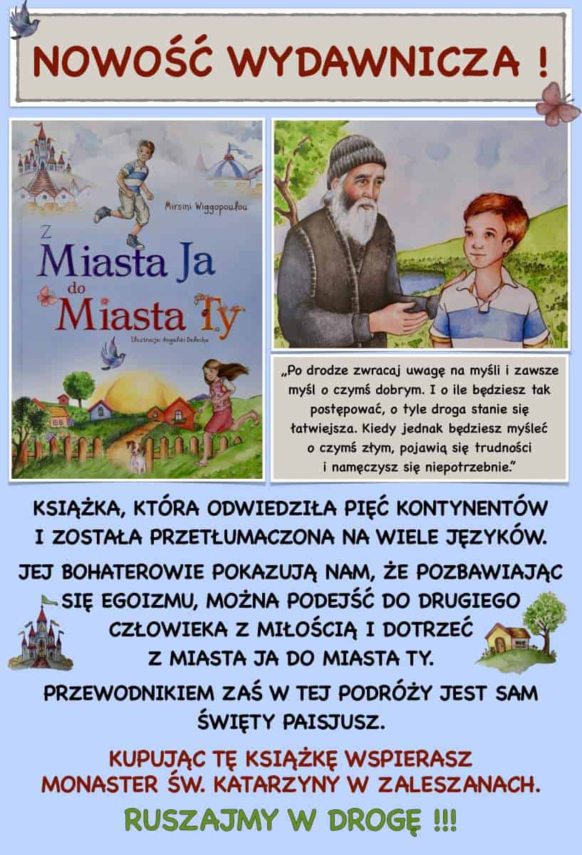 Na polskim rynku wydawniczym ukazała się nowa książka pt. „Z Miasta Ja do Miasta Ty” autorstwa współczesnej greckiej pisarki literatury dziecięcej Mirsini Wiggopoulou, w tłumaczeniu z języka greckiego ihumenii Katarzyny (Niczyporuk). Publikacja doczekała się wydań w wielu językach, m.in. angielskim, francuskim, niemieckim, rumuńskim, serbskim, gruzińskim, rosyjskim, arabskim oraz polskim.