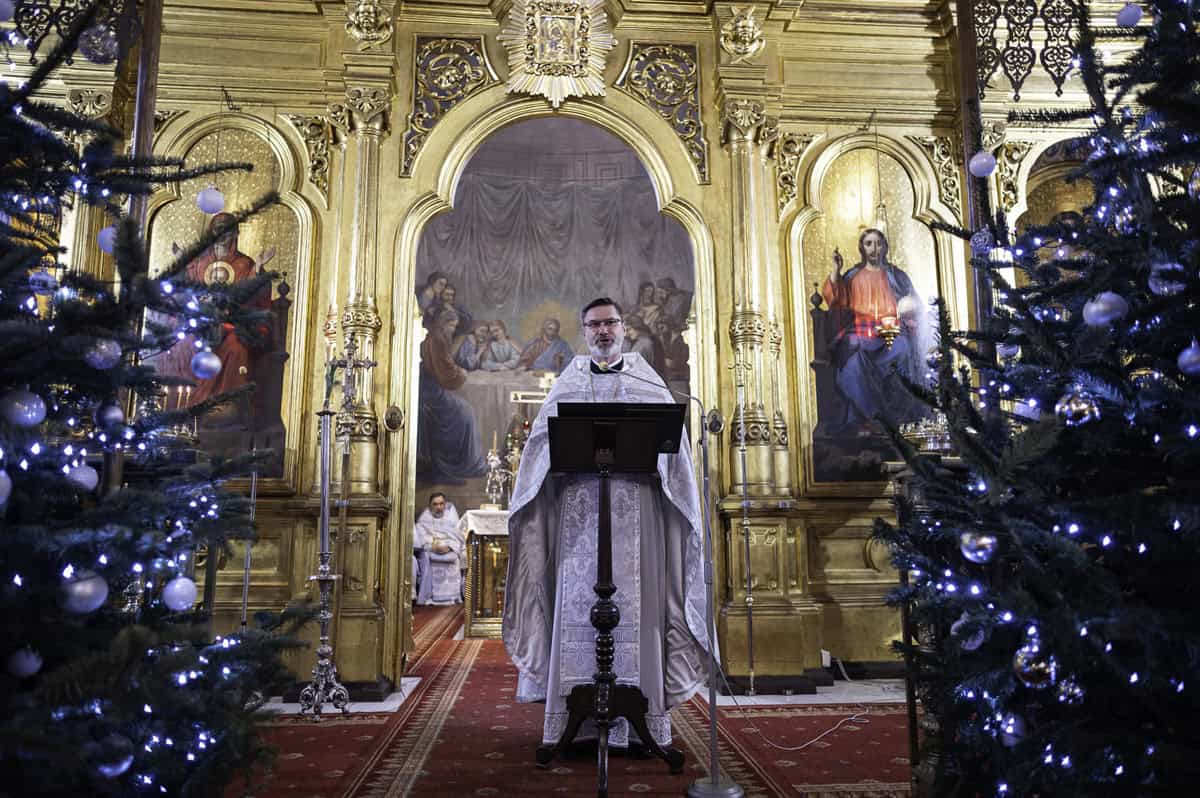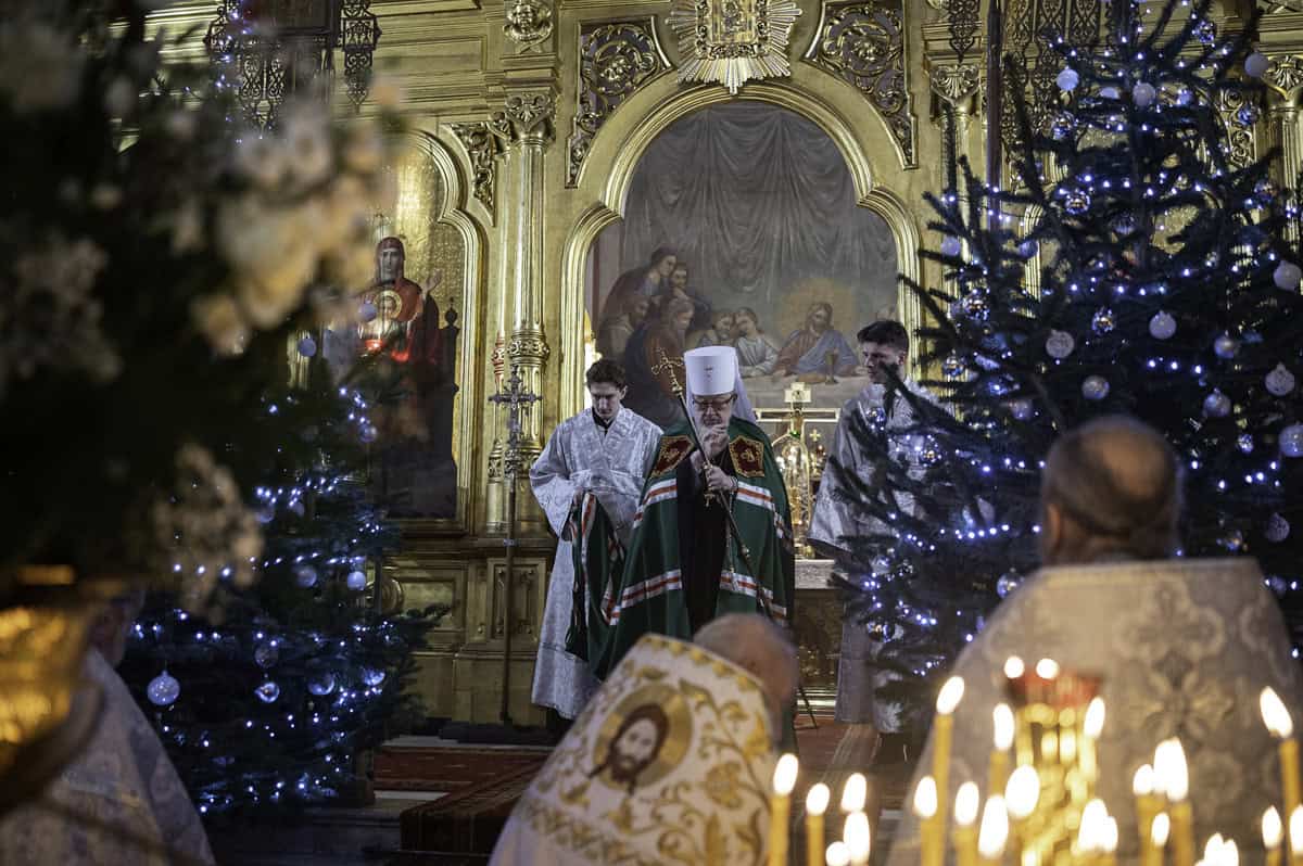 Podczas św. Liturgii celebrowanej przez Jego Eminencję metropolitę Sawę odczytano Orędzie Bożonarodzeniowe Soboru Biskupów naszej Cerkwi oraz okolicznościowy adres wystosowany przez Prezydenta Rzeczypospolitej Polskiej Karola Nawrockiego wraz z Małżonką.